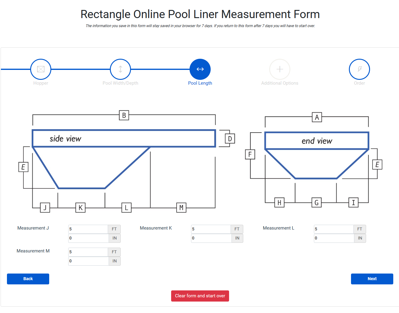 This form is, of course, only for rectangular pools, but there’s such a wide variety of rectangle pools out there. There’s lots of different configurations a pool can have, from corner radius to hopper size to drop-off slope, etc.